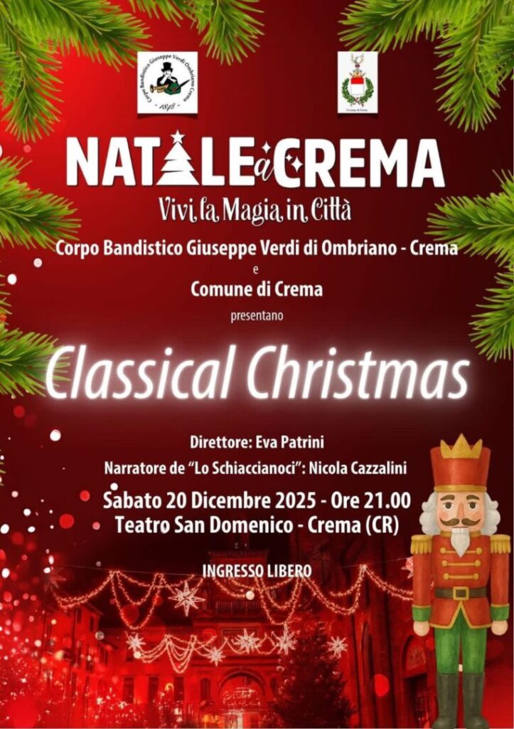 Il Corso Bandistico Giuseppe Verdi di Ombriano e il Comune di crema presentano “Classical Christmas”, concerto a cura della Banda di Ombriano presso il Teatro San Domenico, sabato 20 dicembre alle ore 21,00.