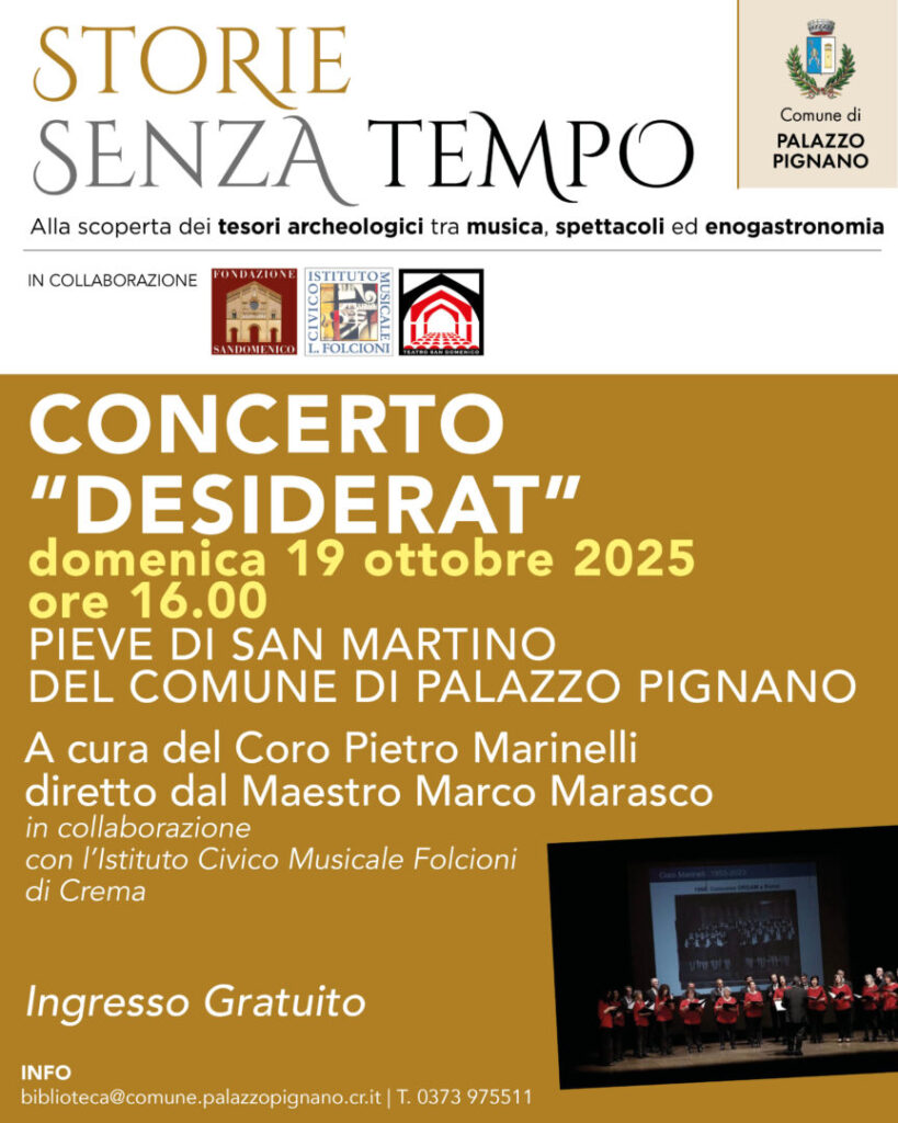 Domenica 19 ottobre presso la Pieve di San Martino alle ore 16,00 si svolgerà il Concerto “Desiderat” a cura del Coro Pietro Marinelli, diretto dal Maestro Marco Marasco, in collaborazione con l’Istituto Folcioni.