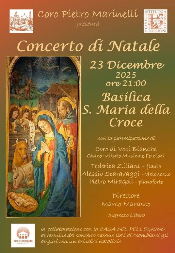 a cura del Coro Pietro Marinelli con la partecipazione del Coro di Voci Bianche (Folcioni), Federica Ziliani al flauto, Alessio Scaravaggi al violoncello e Pietro Miragoli al pianoforte. Direttore: Marco Marasco.